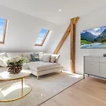 Okrem zariadení na prípravu čaju a kávy disponuje apartmán plne zariadenou kuchyňou vybavenou kávovarom, chladničkou a rúrou. Najbližšie letisko M R Štefánika je vzdialené 10 km od 75 m² apartmánu.
